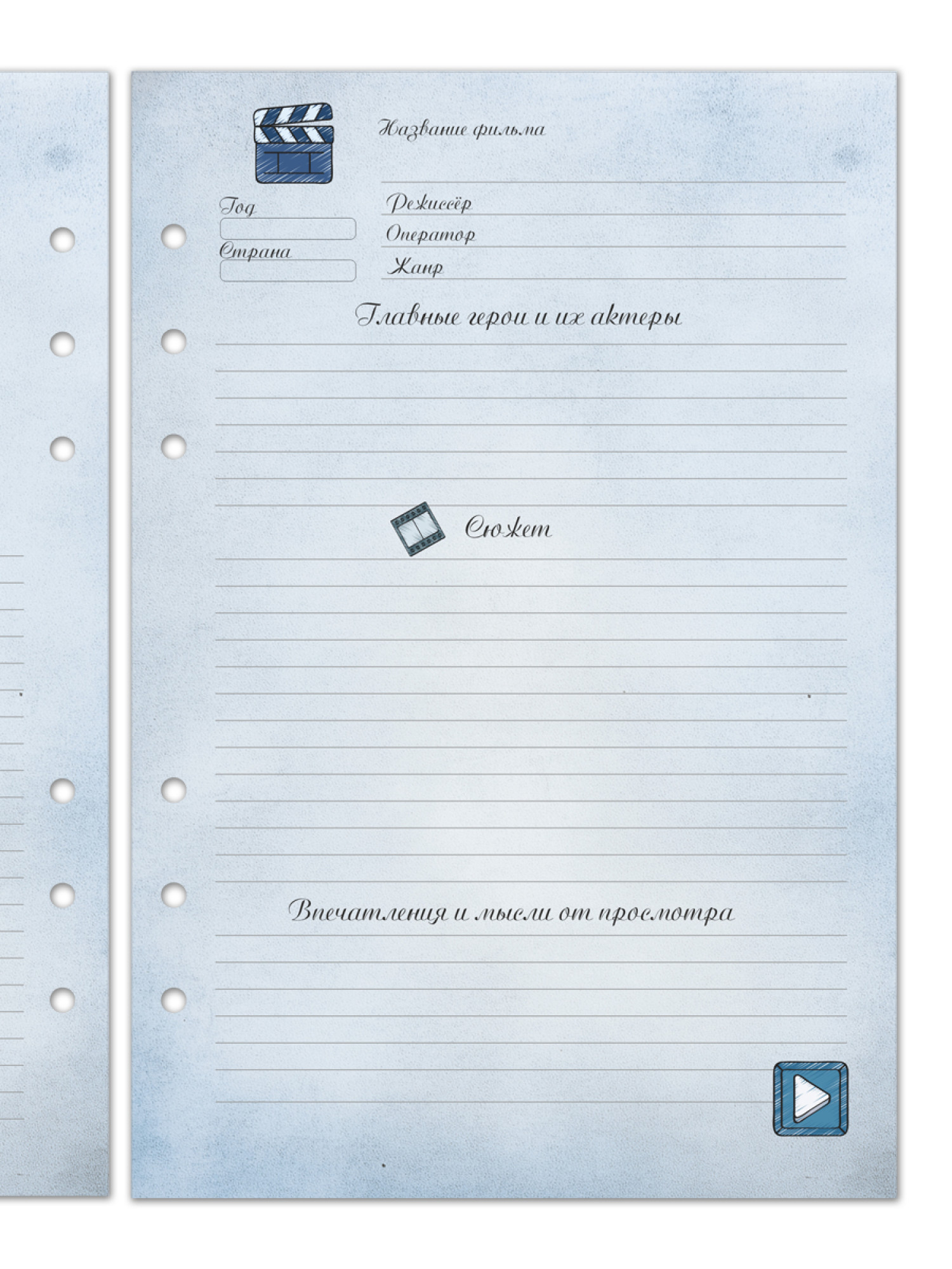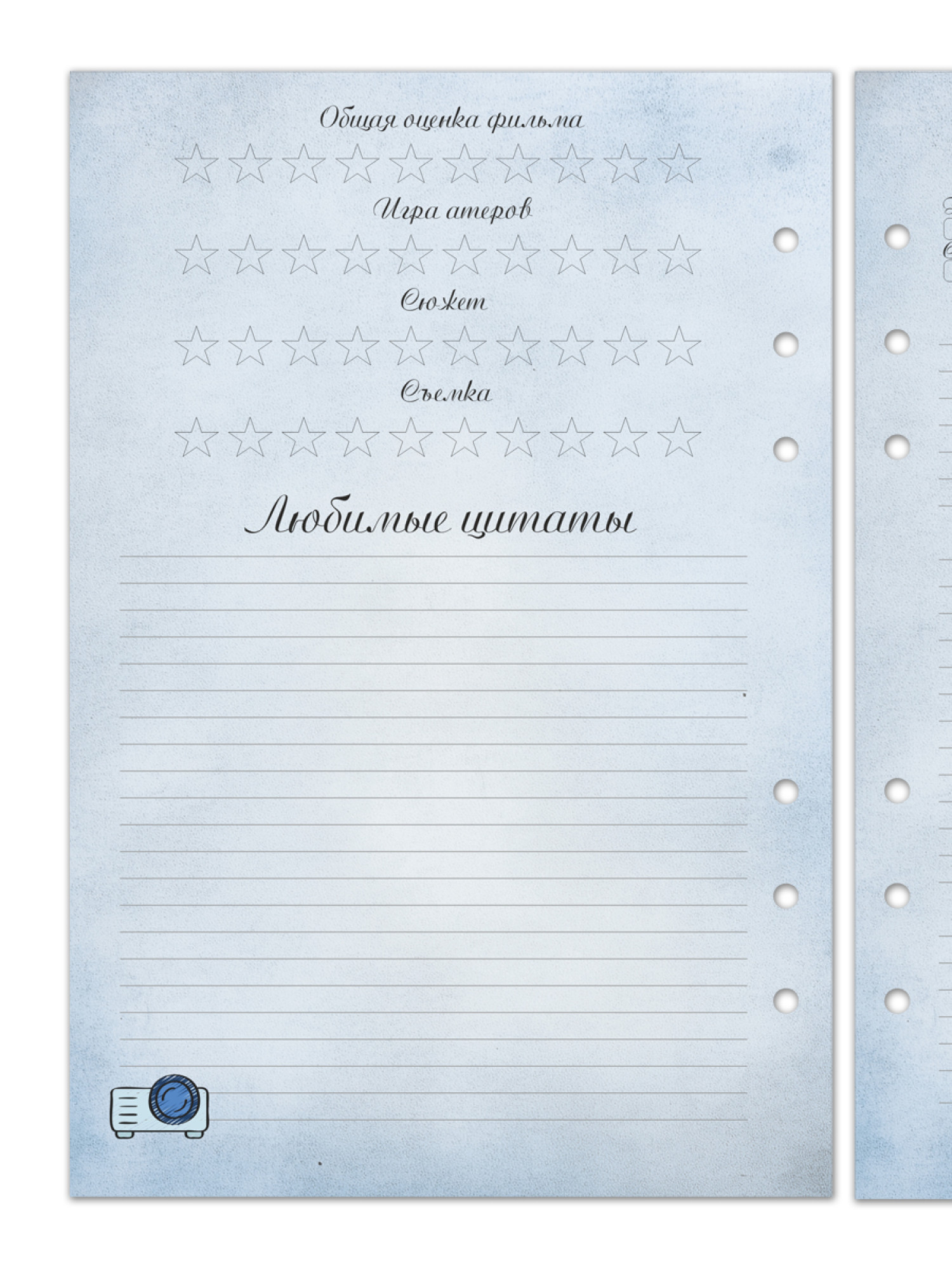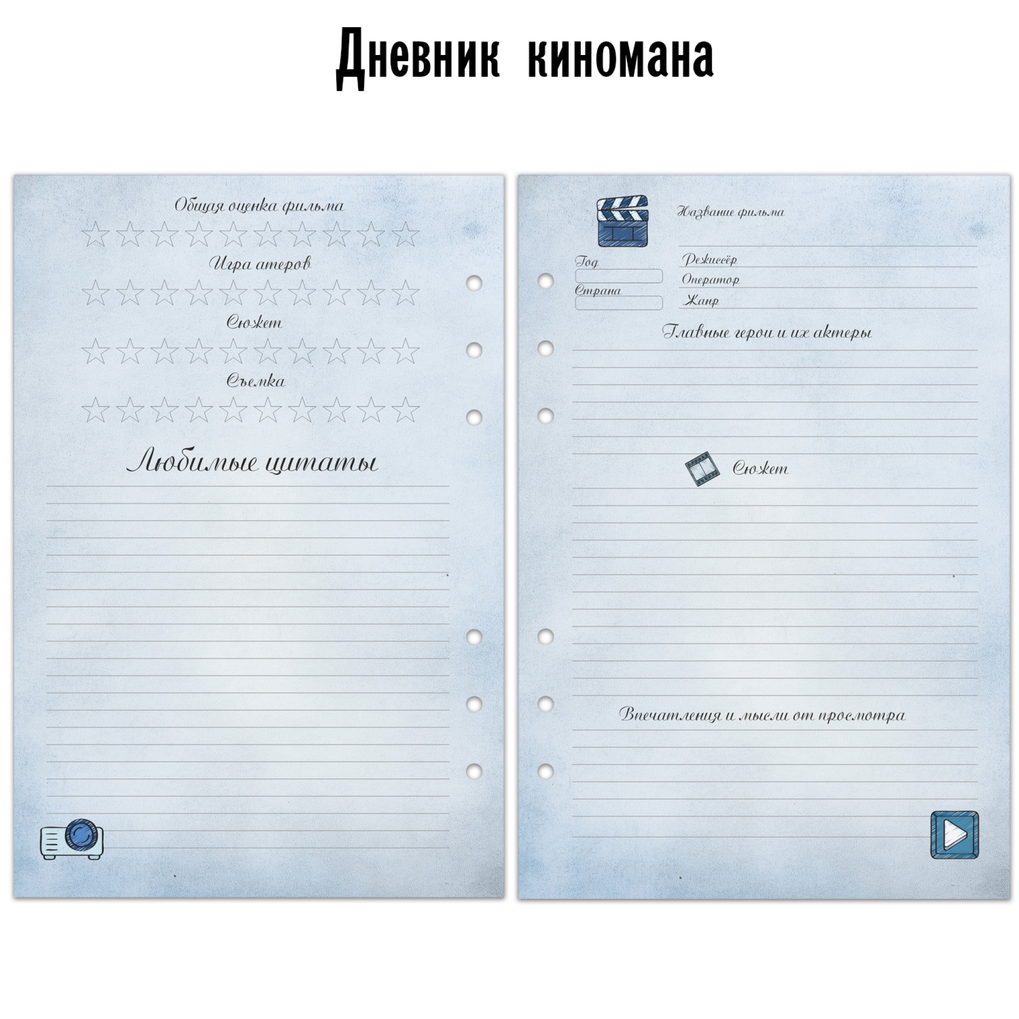 Сменный блок на 6 колец "Дневник киномана", А5, 40 листов