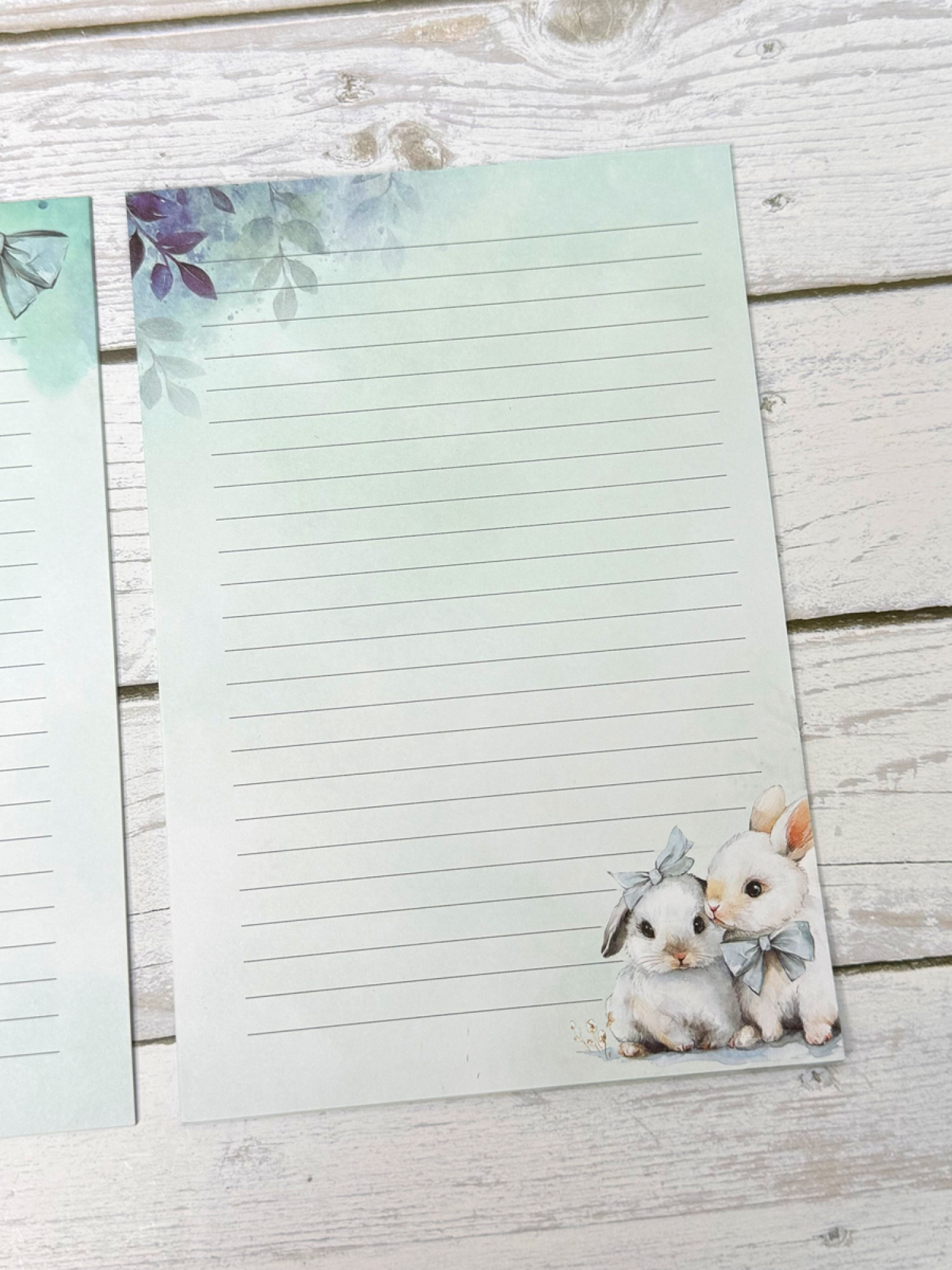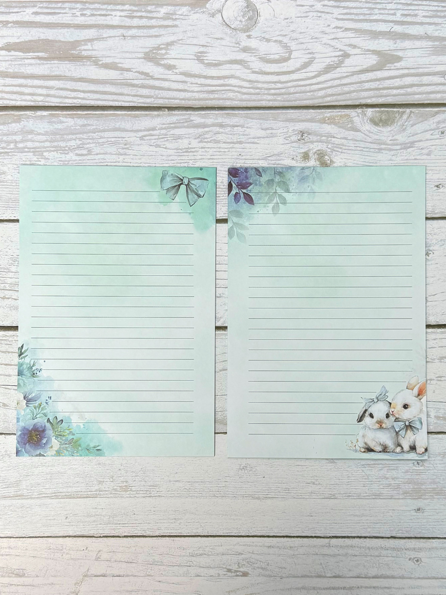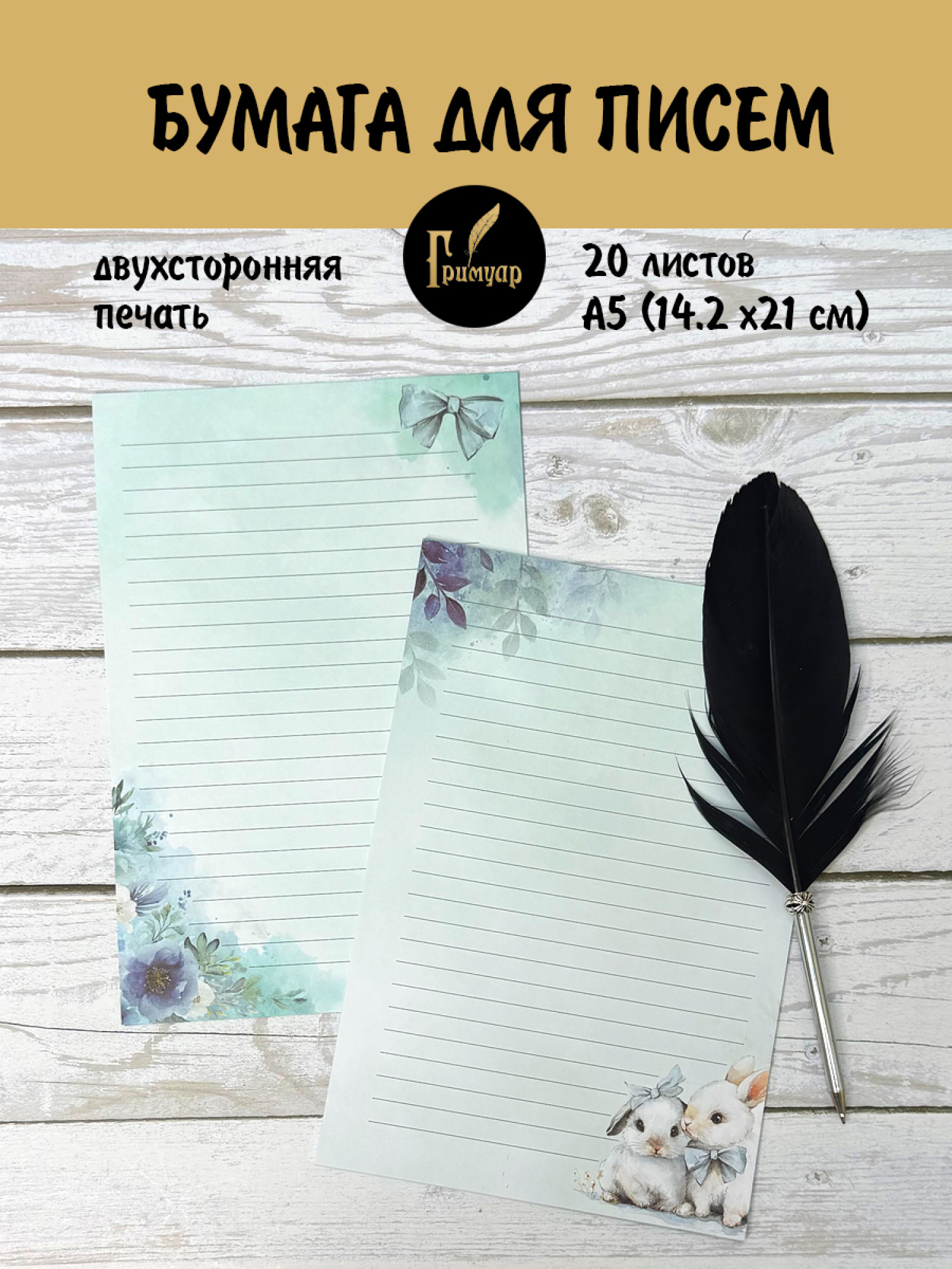 Бумага для писем плотностью 80 г/м2 - подойдет для писем, скрапбукинга, творчества, декупажа, оформления фотоальбомов. Красивая бумага для писем с двусторонней печатью и различным рисунком с двух сторон в наборе по 20 листов в линейку. Бумага для письма и рукоделия содержит милый и стильный рисунок кролики и цветы. Подойдет для печати на принтере, так как плотность бумаги соответсвует офисной бумаги для печати на принтере. Размер листа А5 формат - 14.2х21 см. Подойдет как письма выпускнику или выпускника, письмо в будущее для капсулы времени, письмо любимому или любимой. Используйте бумагу для писем для ваших проектов как письмо литературному герою или персонажу. Также нашу бумагу для писем вы можете использовать для свадебных приглашений, напечатав текст приглашения самостоятельно на принтере или написав текст от руки.