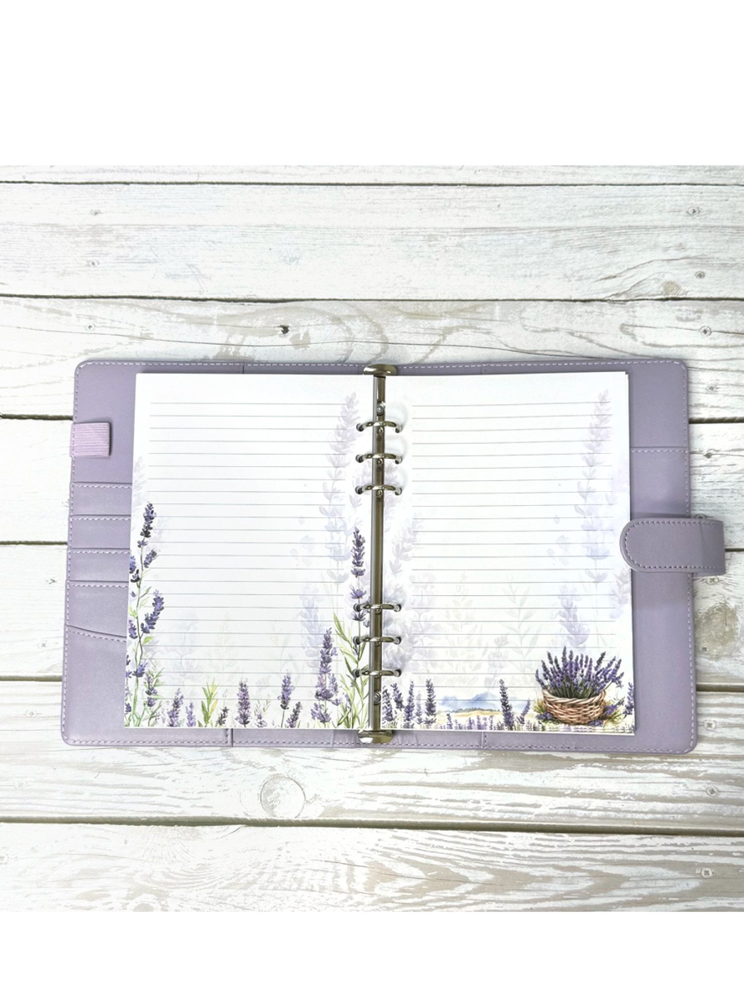 Этот стильный и элегантный женский ежедневник на кольцах выполнен из высококачественной искусственной эко кожи сиреневого цвета и магнитной застежкой, что обеспечивает его долговечность и износостойкость. Листы крепятся на кольцах, что обеспечивает удобство добавления новых листов или перестановки уже использованных.