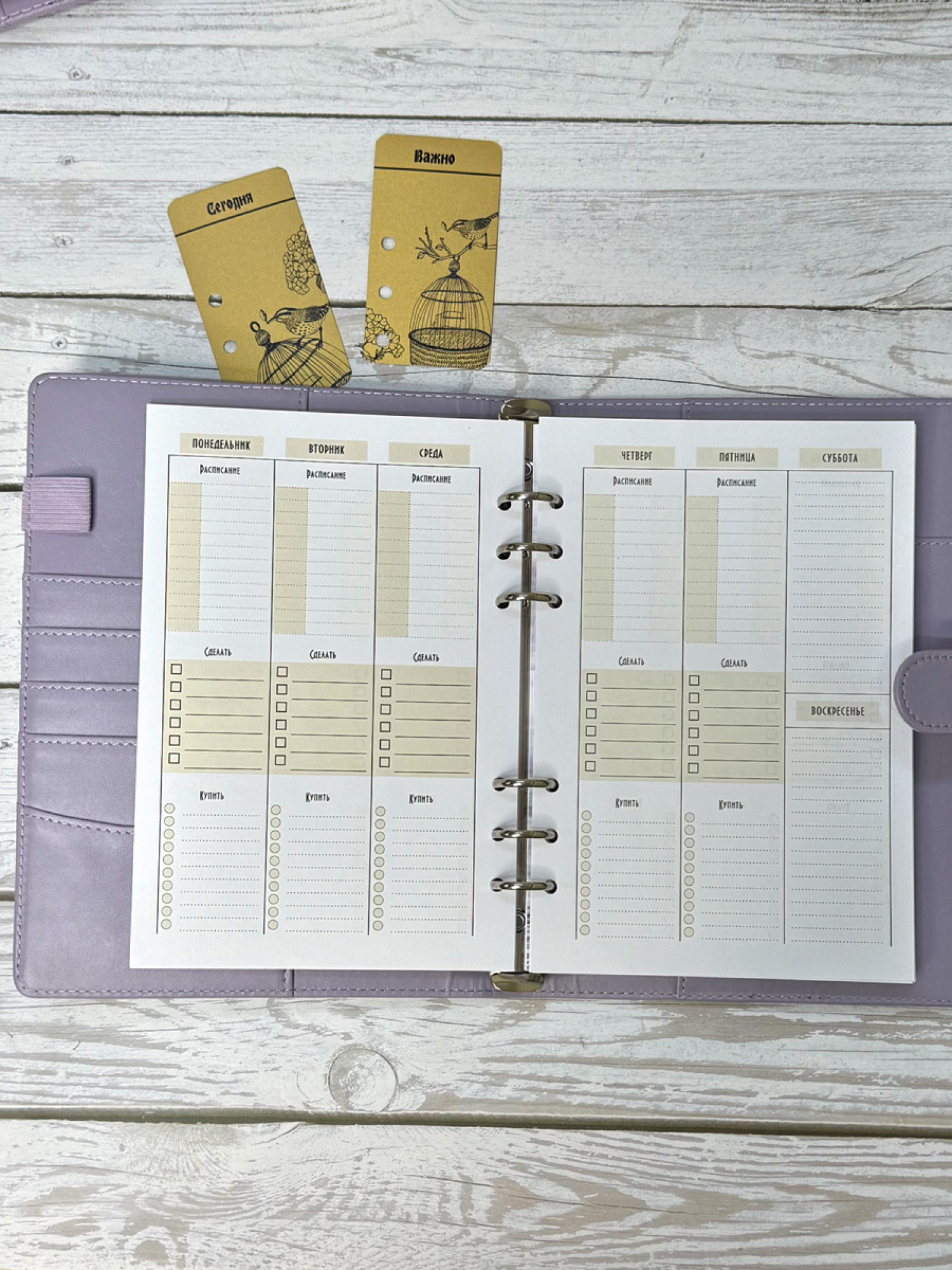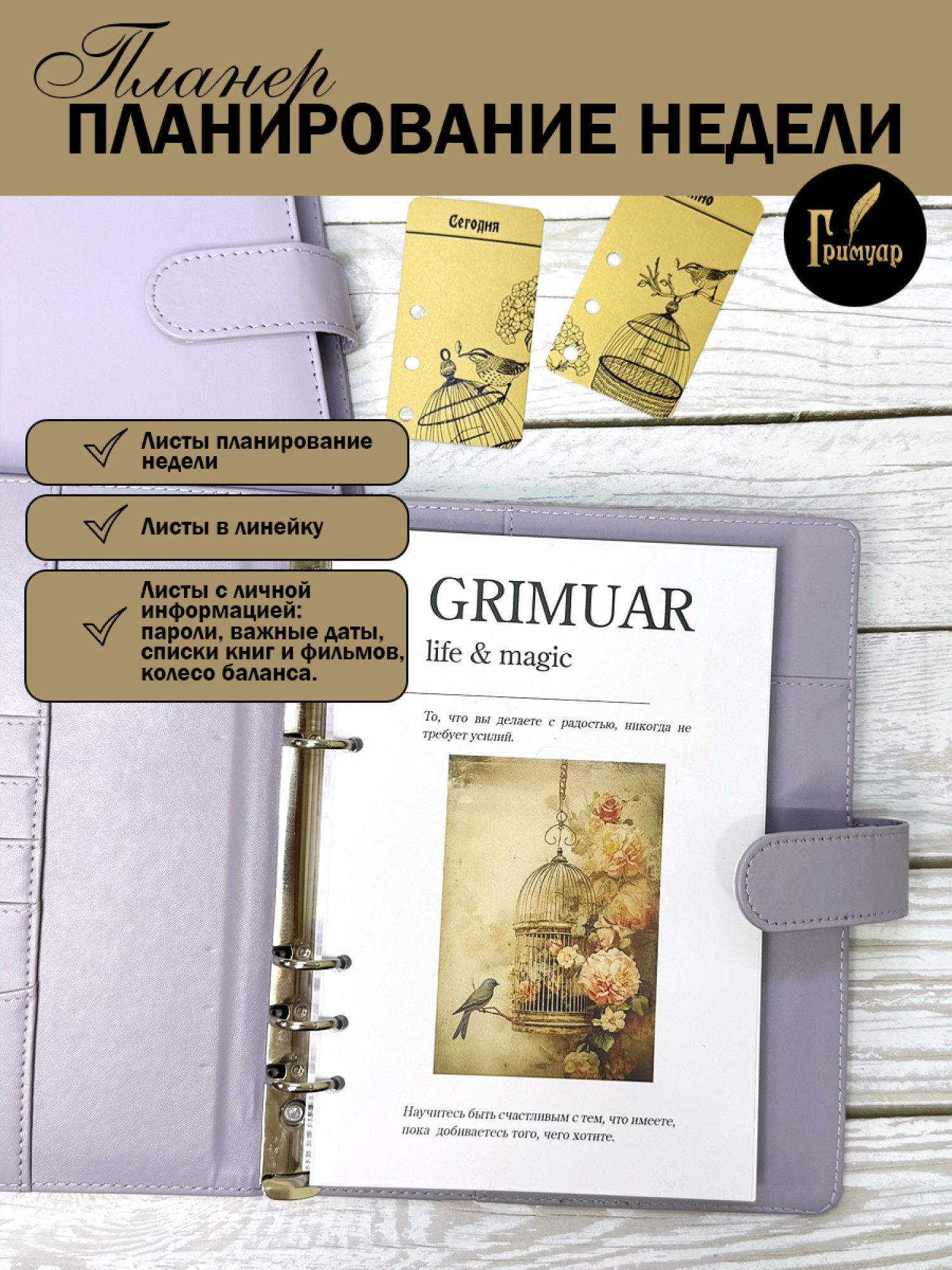 Женский планер ежедневник "Планирование недели" на 6 кольцах от бренда Гримуар - это идеальный помощник для тех, кто ценит организованность и эффективность в повседневной жизни.